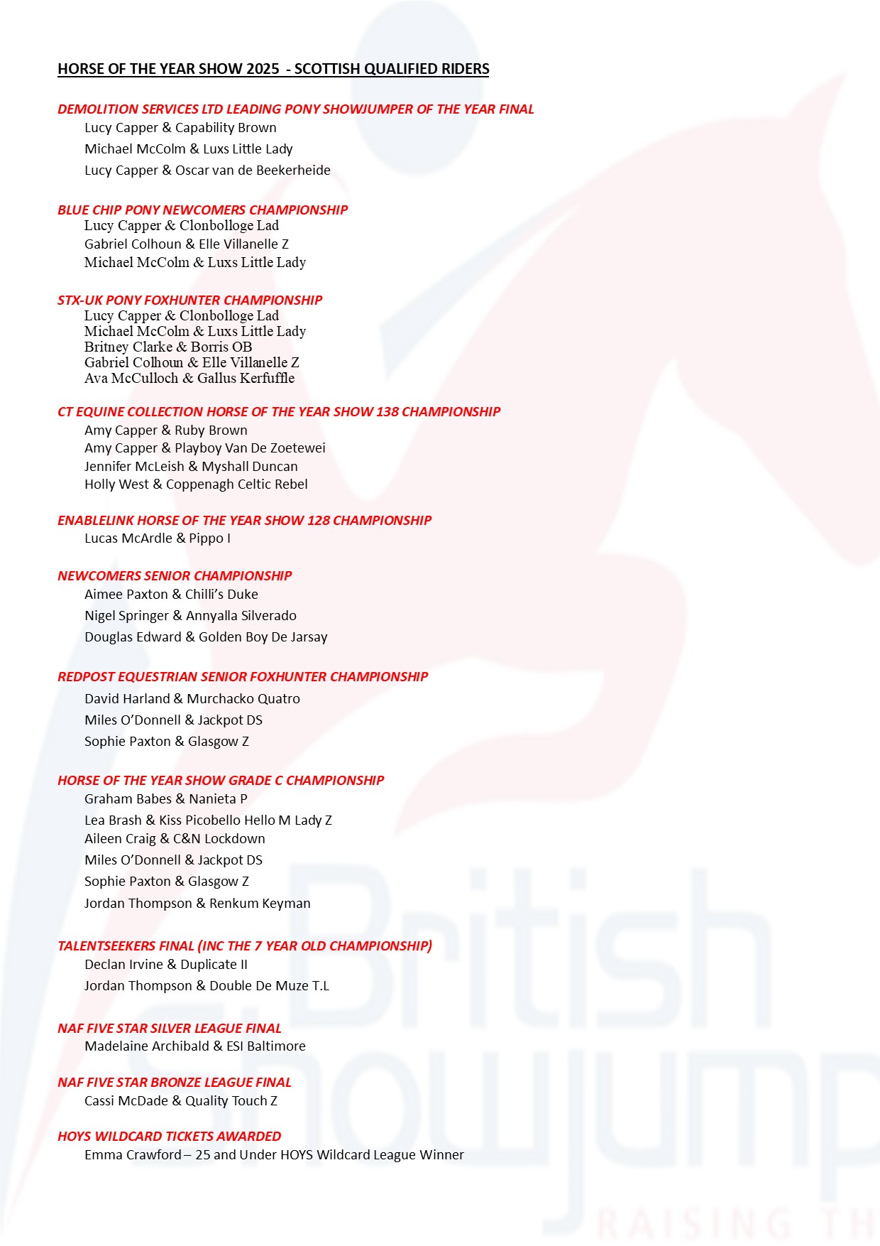 HORSE OF THE YEAR SHOW 2025 - SCOTTISH QUALIFIED RIDERS