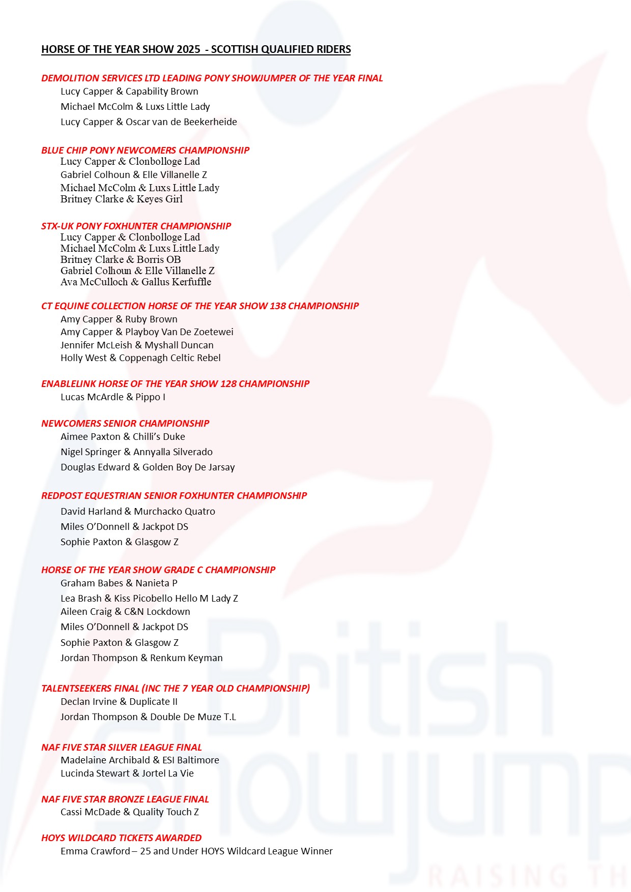 All riders qualified for HOYS can you please email Alison Bradford - bradford968@btinternet.com - to be included in the HOYS Parade class 11 on Saturday 27th September: