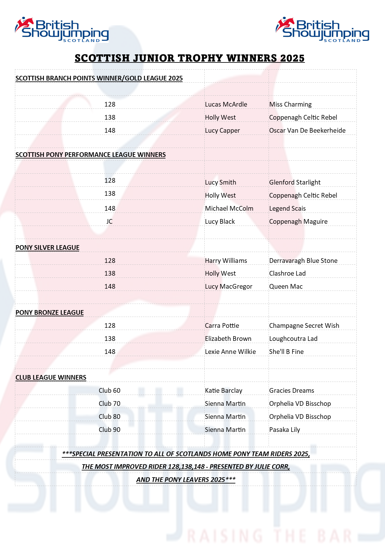 Congratulations to all our 2025 Junior winners, we look forward to seeing you all at the Junior Awards Ball on Friday 14th November at Glenbervie House.