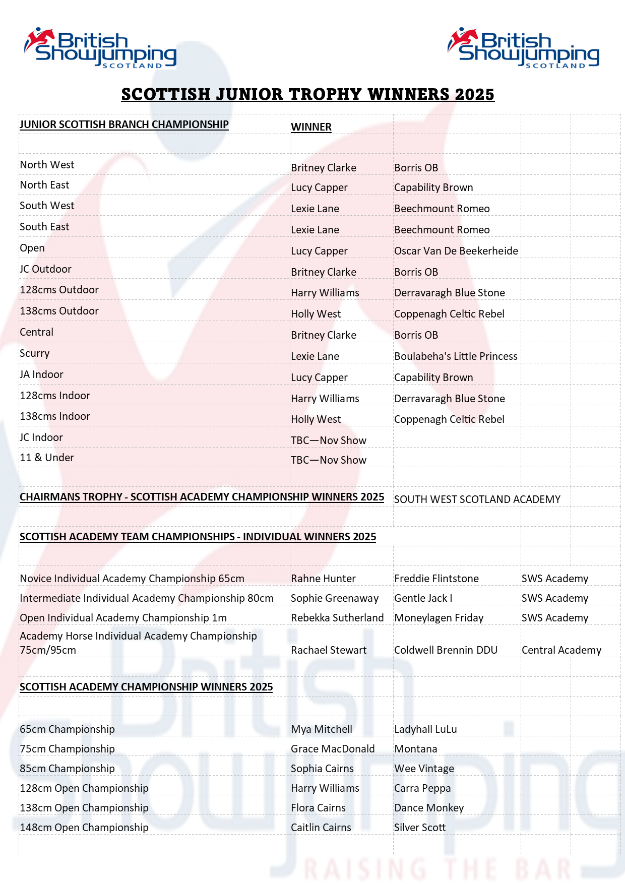 RETURN OF JUNIOR SCOTTISH BRANCH TROPHIES - AWARDS BALL 2025 23/10/2025 |